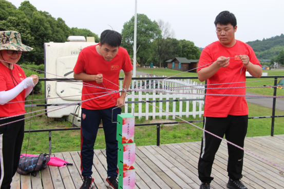 “勝利大會(huì)師”環(huán)節(jié),各隊(duì)員工每人通過(guò)一根細(xì)繩協(xié)力控制掛鉤,按照革命歷史事件先后順序逐個(gè)將積木搭建成塔,最終勝利會(huì)師。同樣值得一提的是,最后一隊(duì)在明知落后的情況下,堅(jiān)決不放棄,在一次次的失敗后最終取得成功,用行動(dòng)詮釋了何為“堅(jiān)持到底就是勝利”。